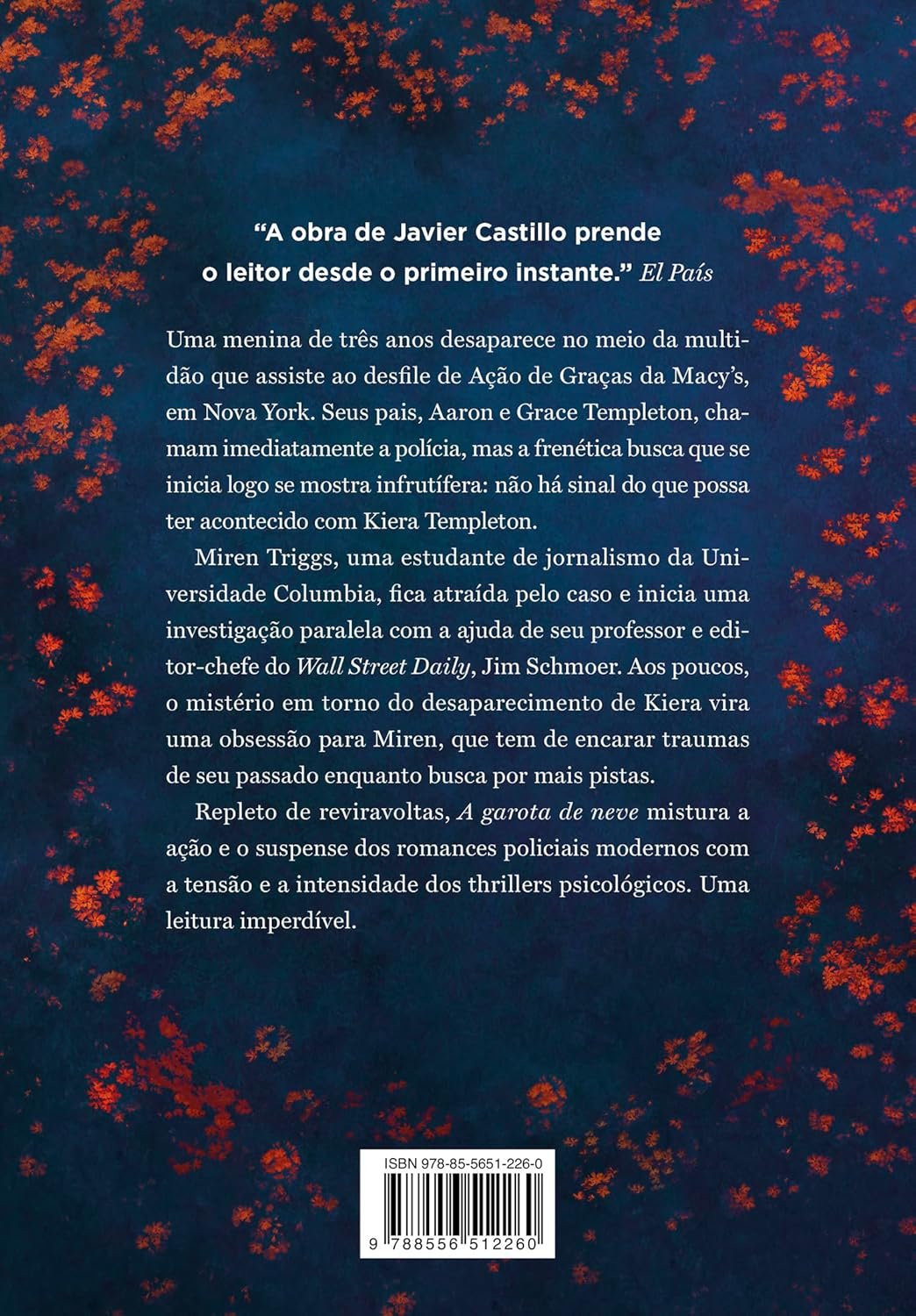 Incrivelmente bem construído, A garota de neve conduz o leitor por uma montanha-russa de emoções. Alternando entre a voz de diversos narradores, Javier Castillo apresenta uma trama mais assustadora e complexa do que, a princípio, se imaginaria.