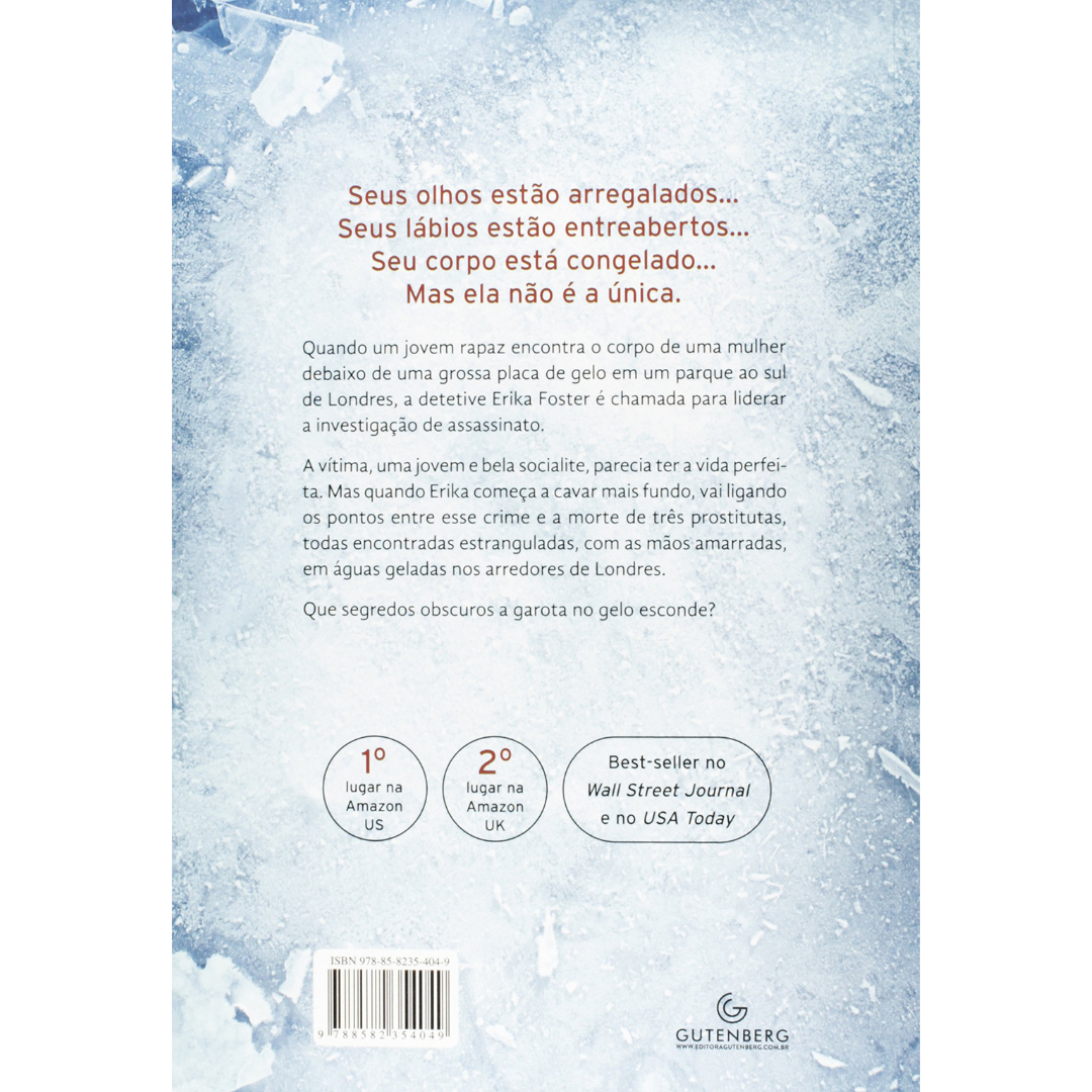 Seus olhos estão arregalados… Seus lábios estão entreabertos… Seu corpo está congelado… Mas ela não é a única.Quando um jovem rapaz encontra o corpo de uma mulher debaixo de uma grossa placa de gelo em um parque ao sul de Londres, a detetive Erika Foster é chamada para liderar a investigação de assassinato.A vítima, uma jovem e bela socialite, parecia ter a vida perfeita. Mas quando Erika começa a cavar mais fundo, vai ligando os pontos entre esse crime e a morte de três prostitutas, todas encontradas estranguladas, com as mãos amarradas, em águas geladas nos arredores de Londres.Que segredos obscuros a garota no gelo esconde? Quanto mais perto Erika está de descobrir a verdade, mais o assassino se aproxima dela.Com a carreira pendurada por um fio depois da morte de seu marido em sua última investigação, Erika deve agora confrontar seus próprios demônios, bem como um assassino mais letal do que qualquer outro que já enfrentou antes.