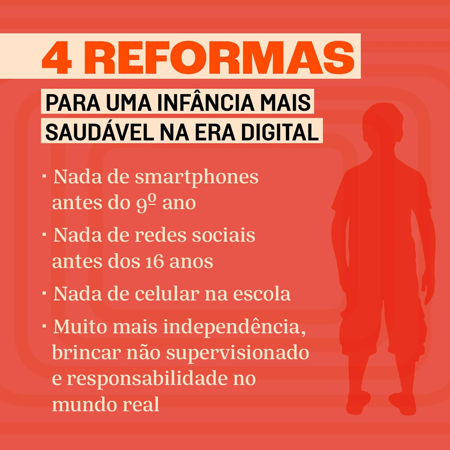 O autor demonstra como a “infância baseada no brincar” entrou em declínio na década de 1980 e foi substituída pela “infância baseada no celular”, acompanhada por uma hiperconectividade que alterou o desenvolvimento social e neurológico dos jovens e tem causado privação de sono, privação social, fragmentação da atenção e vício. Ele também examina por que as redes sociais prejudicam mais as meninas e os motivos que levam os meninos a migrar do mundo real para o virtual, com consequências desastrosas para eles e as pessoas a seu redor.