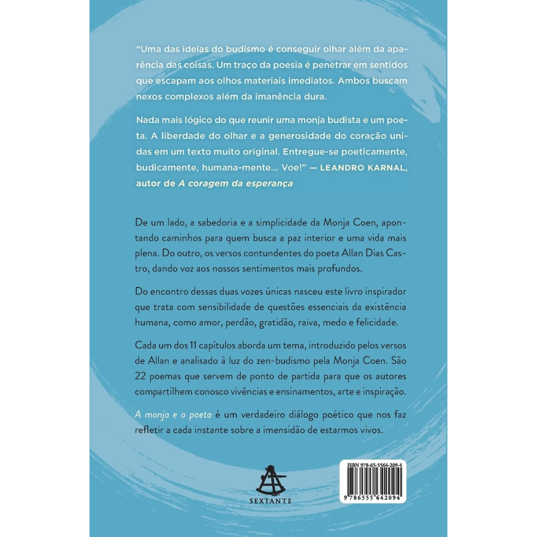 De um lado, a sabedoria e a simplicidade da Monja Coen, apontando caminhos para quem busca a paz interior e uma vida mais plena. Do outro, os versos contundentes do poeta Allan Dias Castro, dando voz aos nossos sentimentos mais profundos.