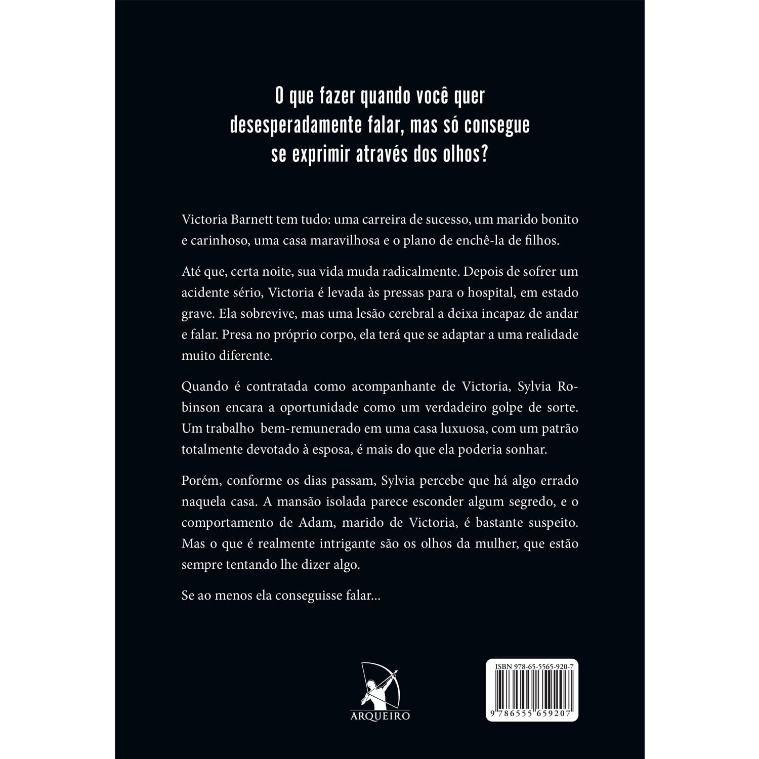 Porém, conforme os dias passam, Sylvia percebe que há algo errado naquela casa. A mansão isolada parece esconder algum segredo, e o comportamento de Adam, marido de Victoria, é bastante suspeito. Mas o que é realmente intrigante são os olhos da mulher, que estão sempre tentando lhe dizer algo.