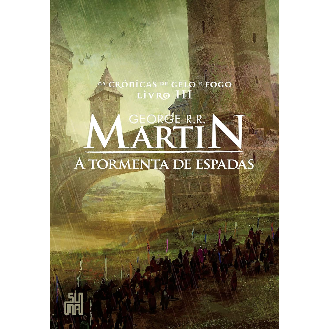 Edição comemorativa. Novo formato 16x23cm e nova capa, criada pelo ilustrador francês Marc Simonetti. De um dos maiores mestres de fantasia surge um épico magistral, poderoso como você jamais viu. Em A tormenta de espadas, terceiro livro da aclamada série As crônicas de gelo e fogo, criada por George R. R. Martin, os Sete Reinos já sentem o rigoroso inverno que chega, e as batalhas tornam-se mais cruéis e impiedosas. Mistério, intriga, romance e aventura encherão as páginas deste livro, agora também um seriado de sucesso da HBO! Enquanto os Sete Reinos estremecem com a chegada dos temíveis selvagens, que atravessam a Muralha numa maré interminável de homens, gigantes e terríveis bestas, Jon Snow, o Bastardo de Winterfell, que se encontra entre eles, divide-se entre sua consciência e o papel que é forçado a desempenhar. Robb Stark, o Jovem Lobo, vence todas as suas batalhas, mas será que conseguirá vencer os desafios que não se resolvem apenas com a espada? Arya continua a caminho de Correrrio, mas mesmo uma garota tão destemida como ela terá grande dificuldade em ultrapassar os obstáculos que surgem em seu caminho. Na corte de Joffrey, em Porto Real, Tyrion luta pela vida, depois de ter sido gravemente ferido na Batalha da Água Negra; e Sansa, livre do compromisso com o homem que agora ocupa o Trono de Ferro, precisa lidar com as consequências de ser a segunda na linha de sucessão de Winterfell, uma vez que Bran e Rickon foram dados como mortos. No Leste, Daenerys Targaryen navega em direção às terras de sua infância, mas antes ela precisará aportar nas desprezíveis cidades dos escravagistas. Porém, a menina indefesa agora é uma mulher poderosa. Quem sabe quanto tempo falta para se transformar em uma conquistadora impiedosa? Todo o território continua a ferro e fogo.