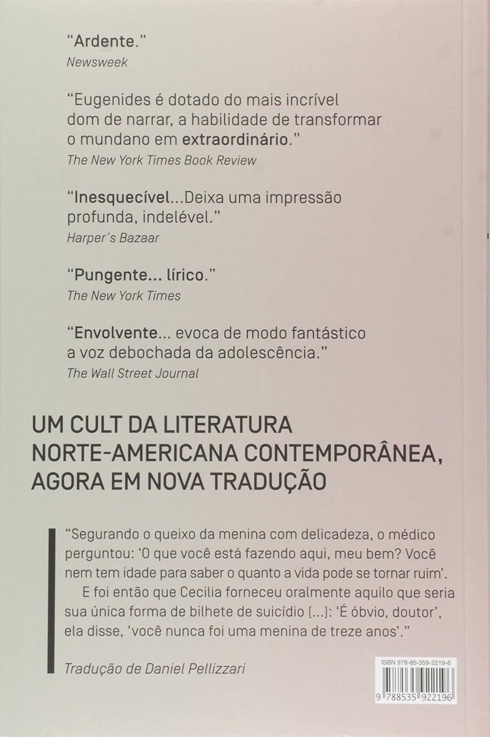 Num típico subúrbio dos Estados Unidos nos anos 1970, cinco irmãs adolescentes se matam em sequência e sem motivo plausível. A tragédia, ocorrida no seio de uma família que, em oposição aos efeitos já perceptíveis da revolução sexual, vive sob severas restrições morais e religiosas, é narrada pela voz coletiva e fascinada de um grupo de garotos da vizinhança. O coro lírico que então se forma ajuda a dar um tom sui generis a esta fábula da inocência perdida. Adaptado ao cinema por Sofia Coppola, publicado em 34 idiomas e agora em nova tradução, o livro de estreia de Jeffrey Eugenides logo se tornou um cult da literatura norte-americana contemporânea. Não por acaso: essa obra de beleza estranha e arrebatadora, definida pela crítica Michiko Kakutani como “pequena e poderosa ópera no formato inesperado de romance”, revela-se ainda hoje em toda a sua atualidade. “Ardente.” – Newsweek “Inesquecível.” – Harper´s Bazaar “Pungente… lírico.” – The New York Times “Envolvente…” – The Wall Street Journal
