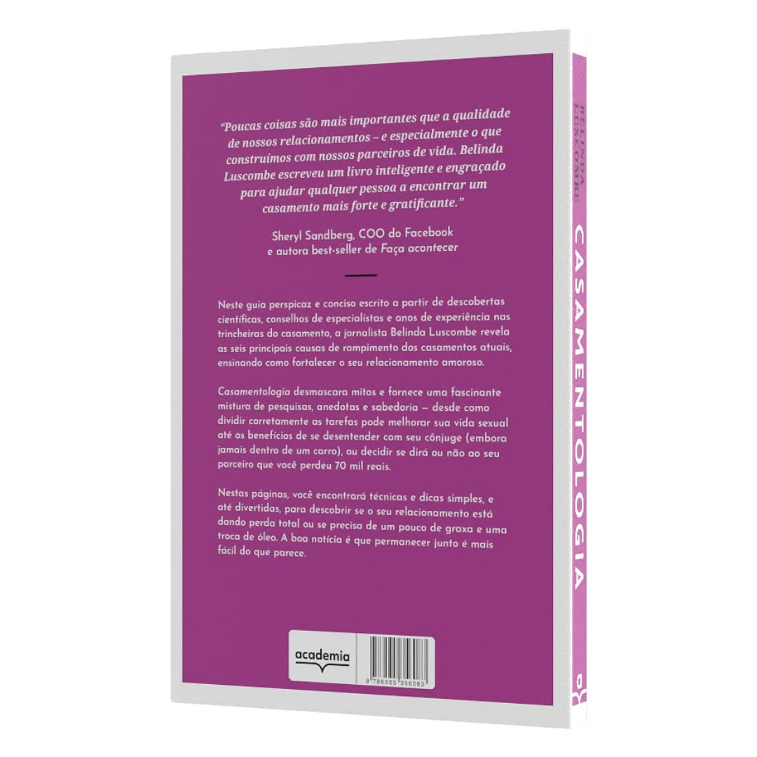 Aprenda como salvar seu relacionamento e viver felizes para sempre. Um guia perspicaz e conciso escrito a partir de descobertas científicas, conselhos de especialistas e anos de experiência nas trincheiras do casamento, a jornalista Belinda Luscombe releva as seis principais causas de rompimento dos casamentos contemporâneos e ensinará você como fortalecer o seu relacionamento amoroso. Casamentologia desmascara mitos e fornece uma fascinante mistura de pesquisas, anedotas e sabedoria – desde como dividir corretamente as tarefas pode melhorar sua vida sexual até os benefícios de se desentender com seu cônjuge (embora jamais dentro de um carro) ou decidir se dirá ou não ao(à) seu(sua) parceiro(a) que você perdeu 70 mil reais. Nestas páginas, você encontrará técnicas e dicas simples, e até divertidas, para descobrir se o seu relacionamento está dando perda total ou se precisa de um pouco de graxa e uma troca de óleo. A boa notícia é que permanecer junto é mais fácil do que parece.