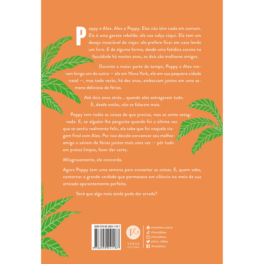 Poppy tem todas as coisas de que precisa, mas se sente estagnada. E, se alguém lhe pergunta quando foi a última vez que se sentiu realmente feliz, ela sabe que foi naquela viagem final com Alex. Por isso decide convencer seu melhor amigo a saírem de férias juntos mais uma vez — pôr tudo em pratos limpos, fazer dar certo. Milagrosamente, ele concorda.