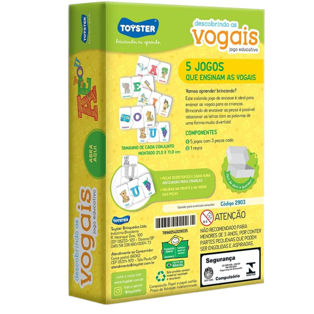 Este colorido jogo de encaixe é ideal para ensinar as vogais para as crianças. Encaixando as peças, é possível relacionar as letras com as palavras de uma forma muito divertida!