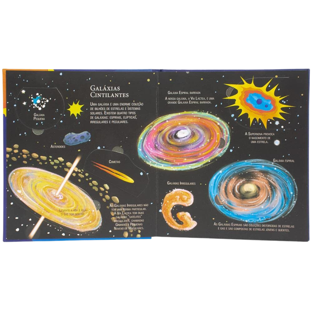 Este incrível livro com abas está repleto de curiosidades e informações sobre o espaço. Com este, o pequeno irá estimular suas habilidades de leitura enquanto se diverte e aprende.