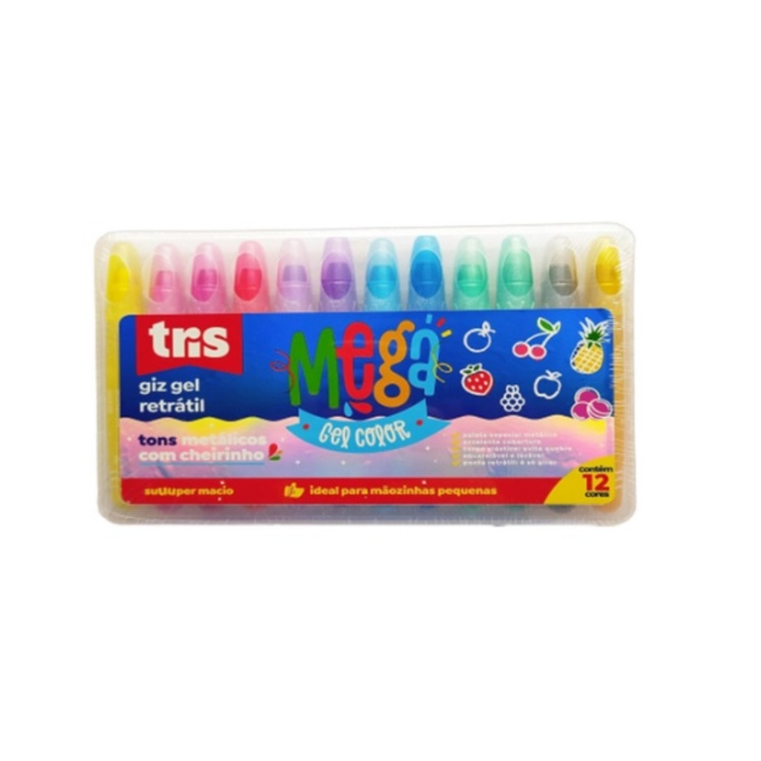 Giz De Cera Retrátil Tris Mega Gel Color Metálico C/12 Cores