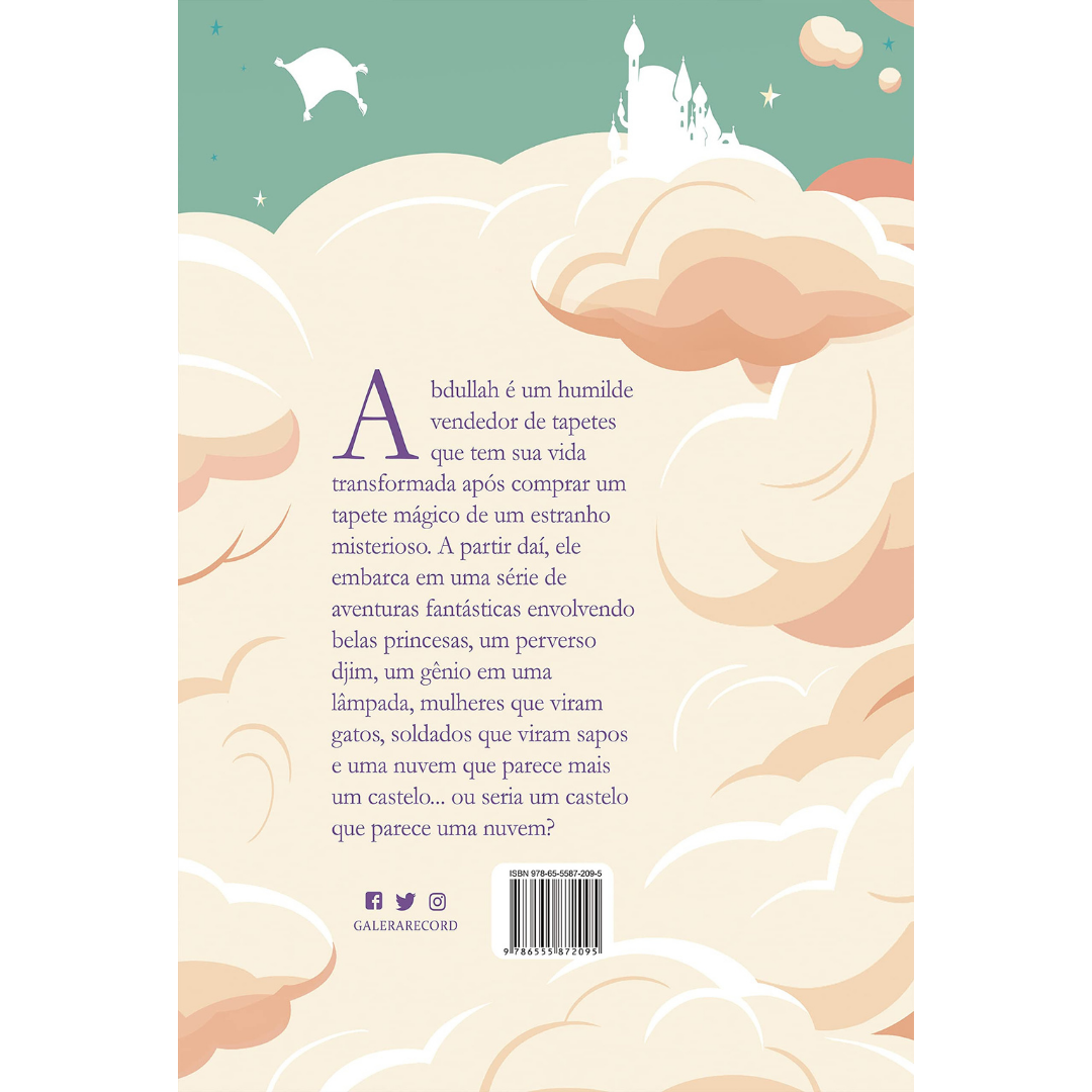Do mesmo universo mágico de Diana Wynne Jones, criadora de O castelo animado, O castelo no ar conta a história de Abdullah, um humilde vendedor de tapetes que tem sua vida transformada após comprar um tapete mágico de um estranho misterioso. Abdullah levava uma vida simples e monótona. Comerciante de tapetes, passava a maior parte dos dias sonhando acordado, imaginando como seria caso tivesse nascido no seio de uma abastada e rica família. Na sua imaginação, Abdullah é, na verdade, um príncipe que foi sequestrado ao nascer e adotado por um pobre mercador de tapetes… Até que, certo dia, um estranho aparece em sua tenda e lhe vende, por uma bagatela, um tapete mágico. Nessa noite, sua vida se transforma completamente.Pouco depois de adormecer, o jovem comerciante acorda e percebe que não está mais em sua tenda, mas em um enorme e luxuoso palácio, onde conhece e logo se apaixona pela bela e inteligente Flor da Noite. Em segredo, os dois planejam fugir juntos, mas, na noite da fuga, Flor da Noite é levada por um terrível demônio, deixando o jovem Abdullah com uma única escolha: reunir forças para encontrá-la.Esta não é, no entanto, uma missão fácil. Mas, decidido a salvar a vida da moça, Abdullah contará com o apoio de personagens um tanto quanto inusitados: um gênio da lâmpada, um soldado desertor egoísta e um gato preto de muita personalidade. Em meio a toda essa aventura e longe da modesta e pacata vida que viveu até então, será que Abdullah conseguirá, finalmente, resgatar sua princesa?