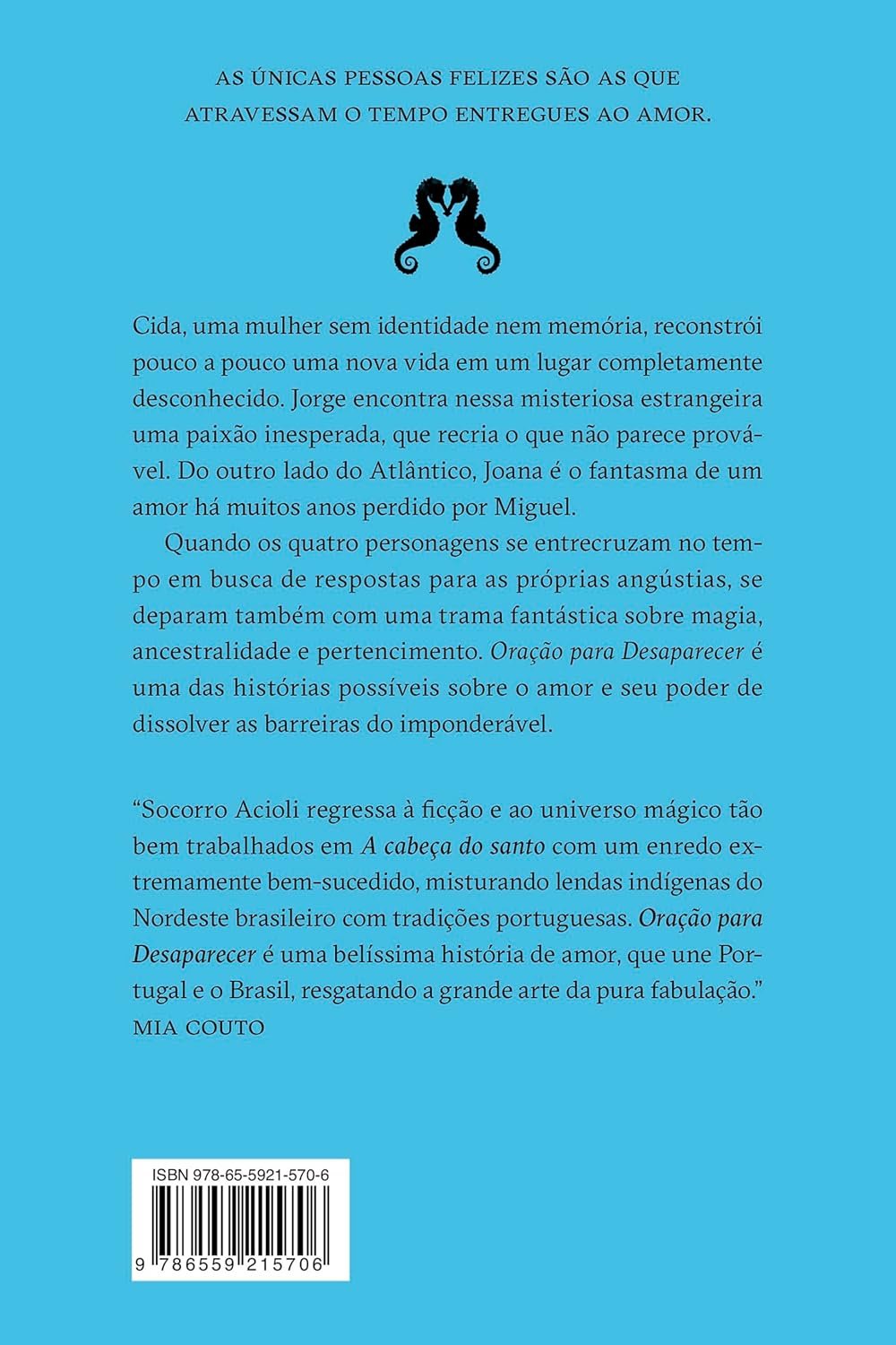 Quando os quatro personagens se entrecruzam no tempo em busca de respostas para as próprias angústias, se deparam também com uma trama fantástica sobre magia, ancestralidade e pertencimento. Oração para Desaparecer é uma das histórias possíveis sobre o amor e seu poder de dissolver as barreiras do imponderável.