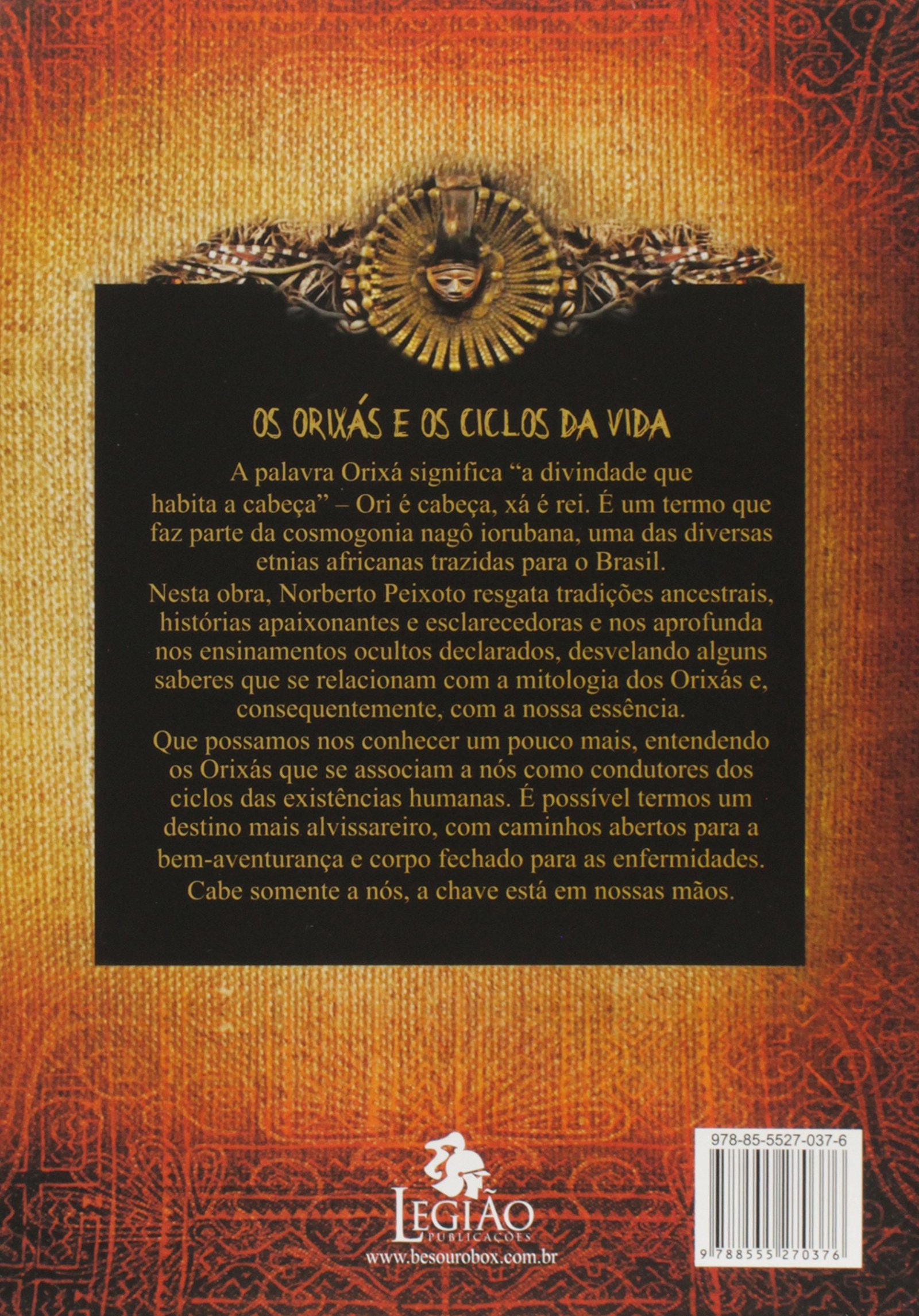 O autor resgata tradições ancestrais, histórias apaixonantes e esclarecedoras e nos aprofunda nos ensinamentos ocultos declarados, desvelando alguns saberes que se relacionam com a mitologia dos Orixás e, consequentemente, com a nossa essência. No livro, questões instigantes referentes à existência humana, inspiradas pelo espírito Senhor Ogum Sete Estradas (Ramaogundá), são elucidadas com profundidade. Afinal, o que são os Orixás? Por que eles foram criados? Esta obra, escrita numa linguagem acessível, serve como um guia de estudos e reflexão para umbandistas, adeptos das religiões da diáspora africana e simpatizantes em geral, afeitos a estes saberes milenares que forjam inexoravelmente a alma universalista do brasileiro. Que possamos nos conhecer um pouco mais ao entender os Orixás que se associam a nós como condutores dos ciclos das existências humanas. É possível termos um destino mais alvissareiro, com caminhos abertos para a bem-aventurança e corpo fechado para as enfermidades. Cabe somente a nós, a chave está em nossas mãos. ORELHA 9