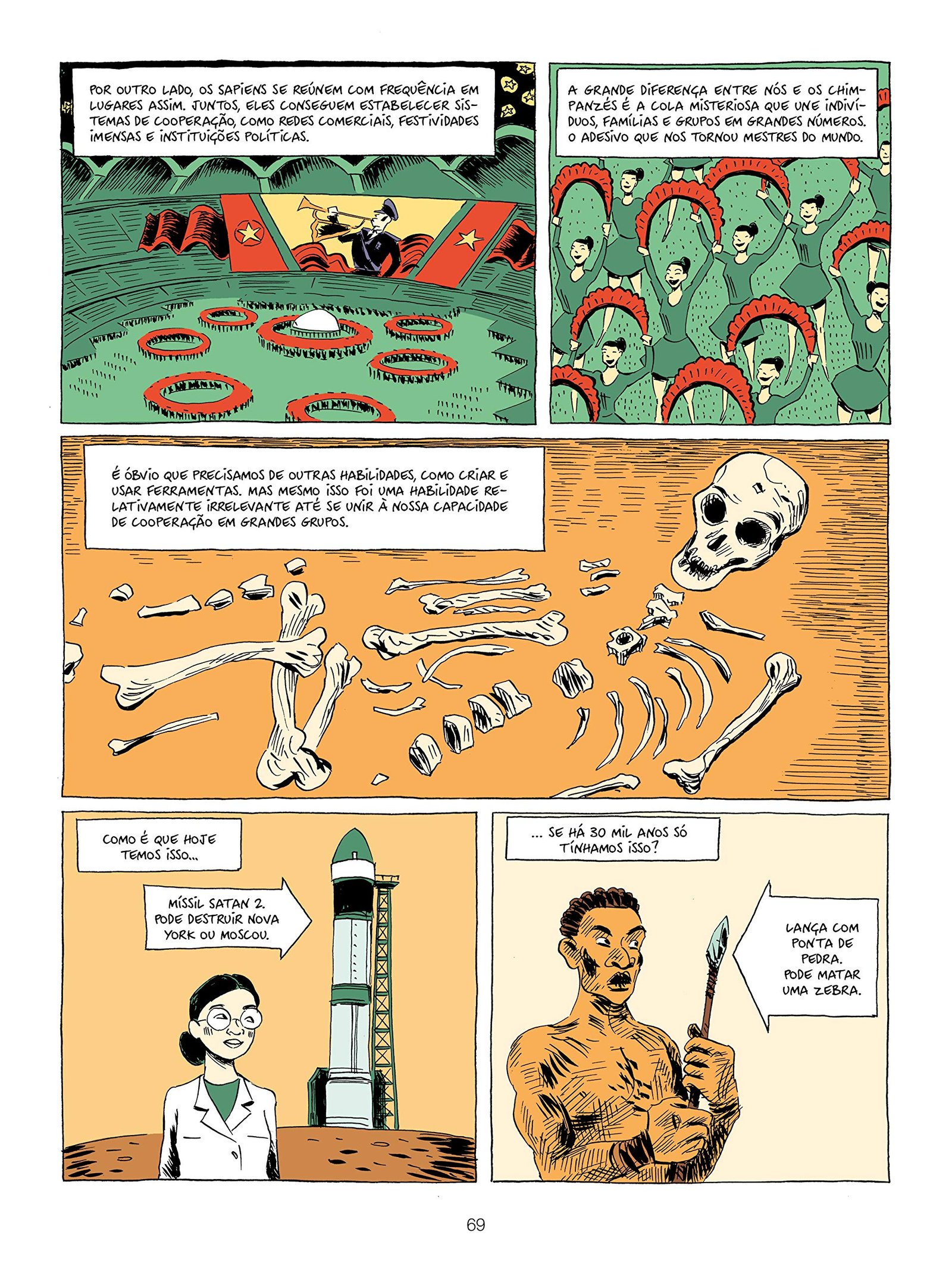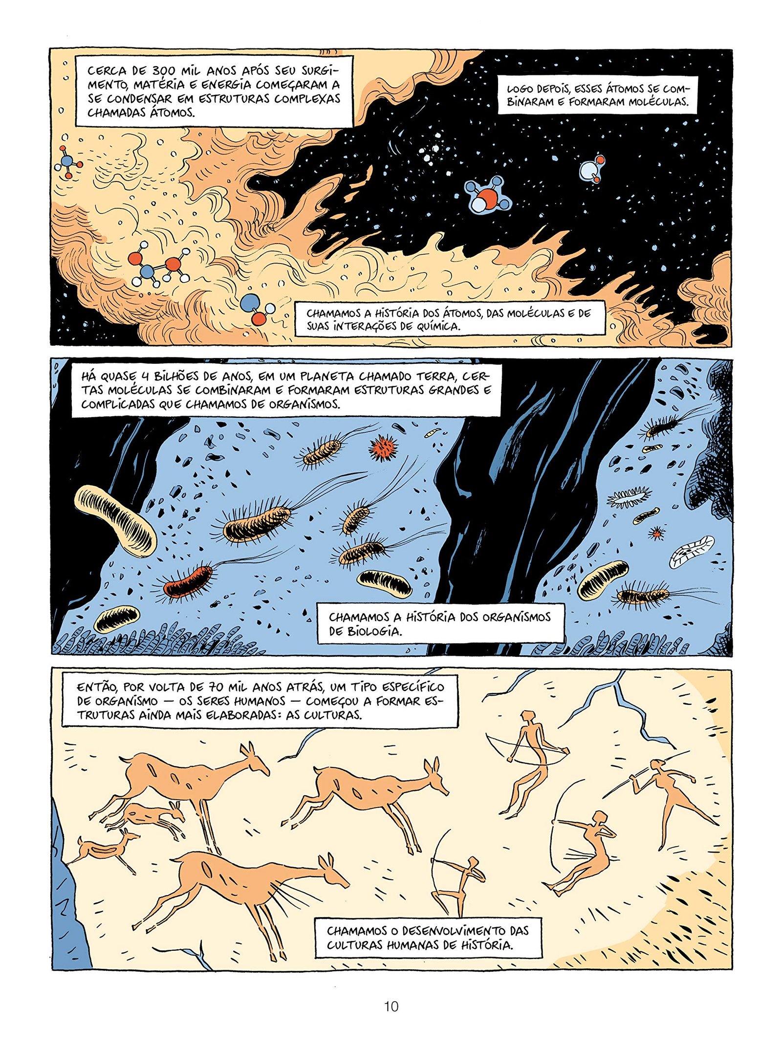 Esta série em quadrinhos é uma versão radical da história da humanidade, recheada de inteligência, humor e personagens pitorescos, e pensada para cativar quem gostaria de saber, entre outros assuntos, como um reles primata se tornou governante do planeta Terra, capaz de dividir átomos, viajar à Lua e manipular o código genético da vida.
