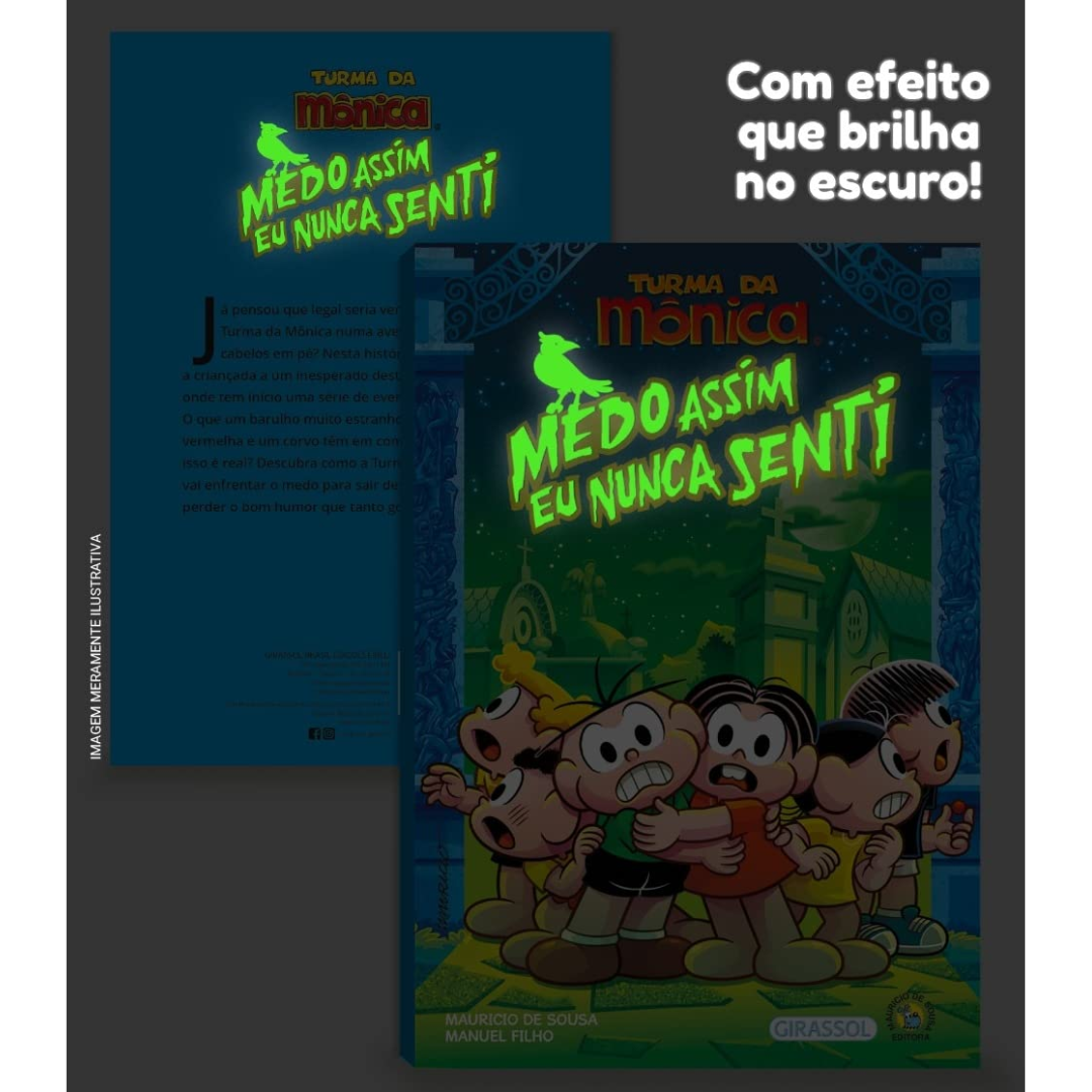 Já pensou que legal seria ver a nossa tão amada Turma da Mônica numa aventura de deixar os cabelos em pé? Nesta história, Seu Xavecão leva a criançada a um inesperado destino: um cemitério, onde tem início uma série de eventos inexplicáveis. O que um barulho muito estranho, uma pedrinha vermelha e um corvo têm em comum? Será que tudo isso é real? Descubra como a Turminha do Limoeiro vai enfrentar o medo para sair dessa – sem nunca perder o bom humor que tanto gostamos! Ah, a capa, se exposta à luz por algum tempo, vai brilhar no escuro!