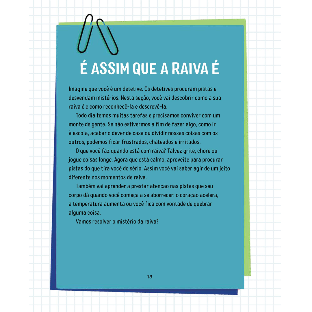 DESCUBRA O QUE FAZ VOCÊ SENTIR RAIVA em casa, na escola, no convívio com os amigos e nas mais diversas situações. Faça dezenas de atividades para resolver o mistério da raiva!